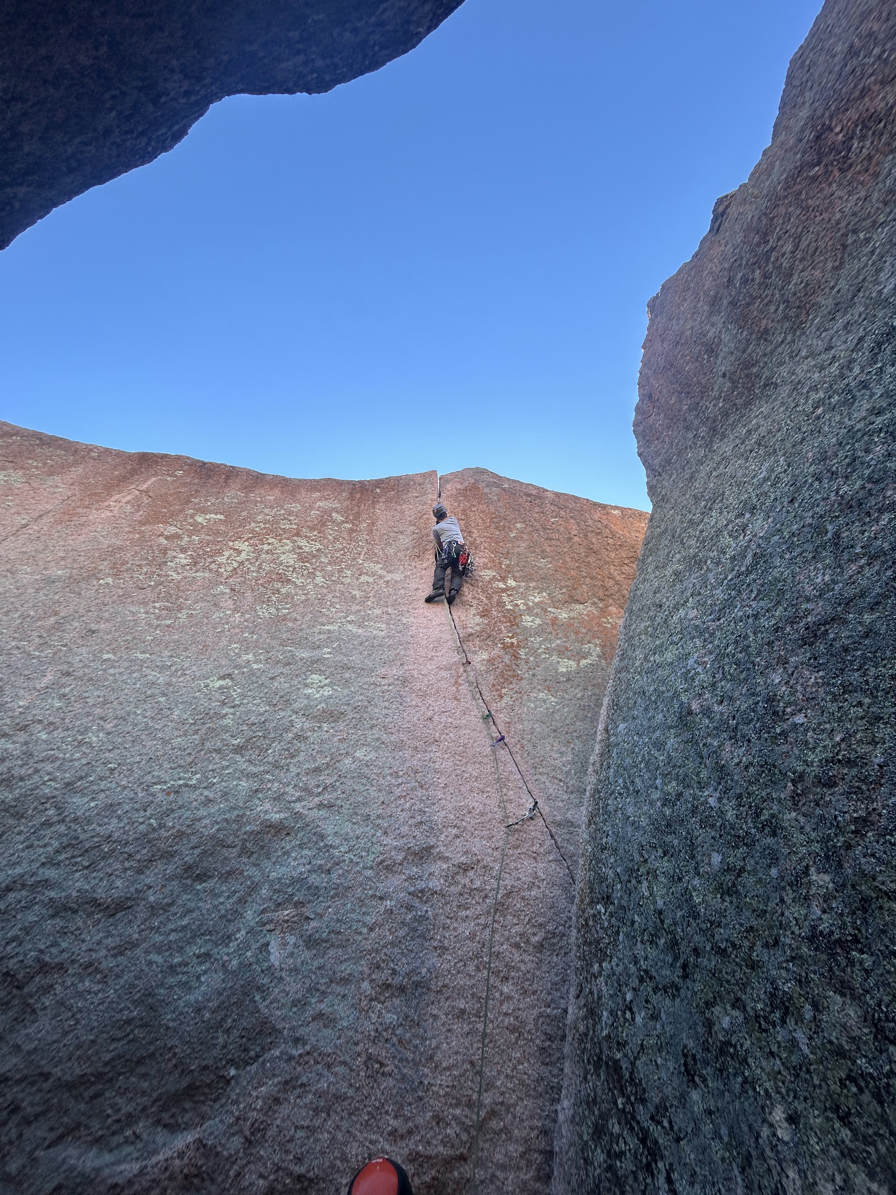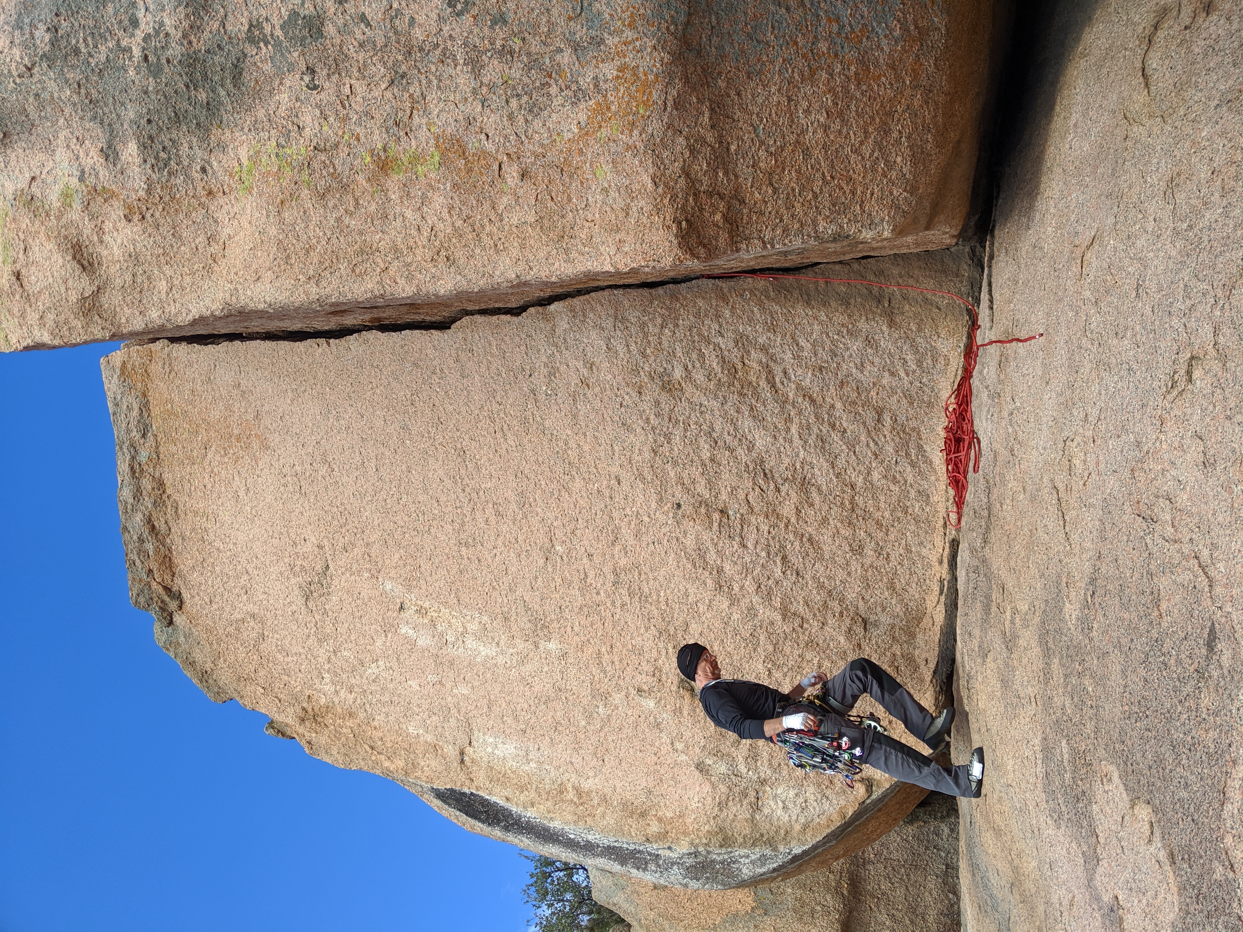 During my first time at Inks Ranch here in Central Texas, I hung on my gear while leading Mister Poopy Crack (5.7, 1 pitch). It was my first time ever weighting my gear mid-lead on trad. I’ve done this a lot in sport climbing, but it took 10 years to get there in trad! For me anyways haha.