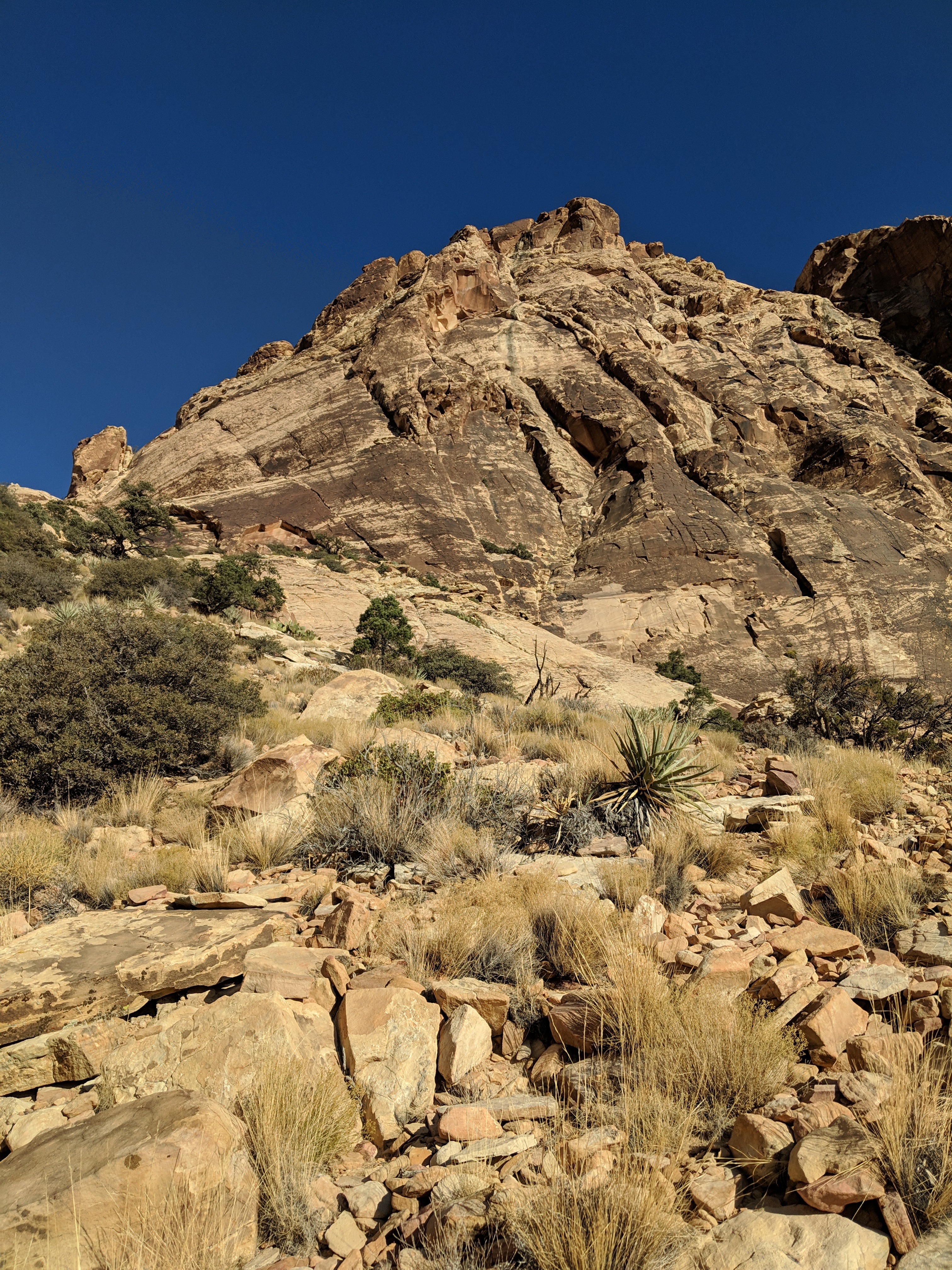 We improvised direct pressure for the injury with a sock and climbing tape and that stopped the bleeding. But, we also had 2 friends behind us. Once they got to the top and were safe, we told them about the accident and that we needed to leave as quickly as possible. We hiked an hour and a half back to the car, drove about 30 minutes into Summerlin to an urgent care clinic and M got stitched up. Fortunately, that’s all he needed. Glad he didn’t get more injured.