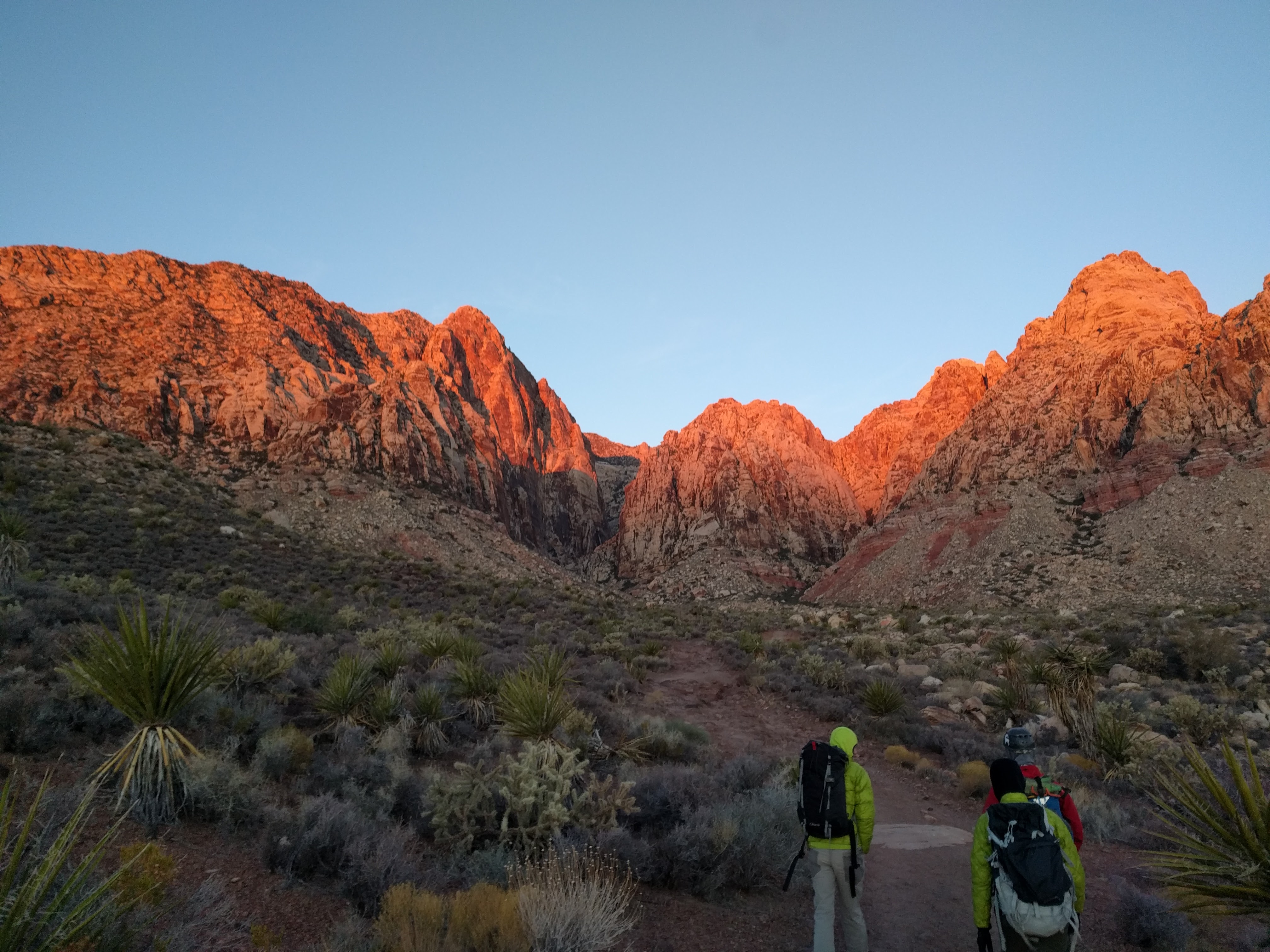 We’d start our Red Rock climbing the day we landed. So, we wanted to select a short route with a short approach, so we wouldn’t get stuck climbing in the dark. We selected Geronimo (5.6, 4 pitches). We got a little lost finding it - bummer. But made it eventually. There were oodles of parties ahead of us. We waited at the base, and eventually climbed. I led the first pitch. The parties in front of us were slow. Luke led the second pitch. We crossed the terrace to consider going up pitch 3. We found a guided party of 3 coming down. They told us of many climbers ahead, including a slow guided party. Luke taught them about the Connecticut Tree hitch, but I kept substituting other silly names. We decided to bail and the guide of the 3-person team was nice enough to let us rap their lines to speed up our descent. She was super nice, and I’m grateful to her. We made it to the ground right before we needed our headlamps.