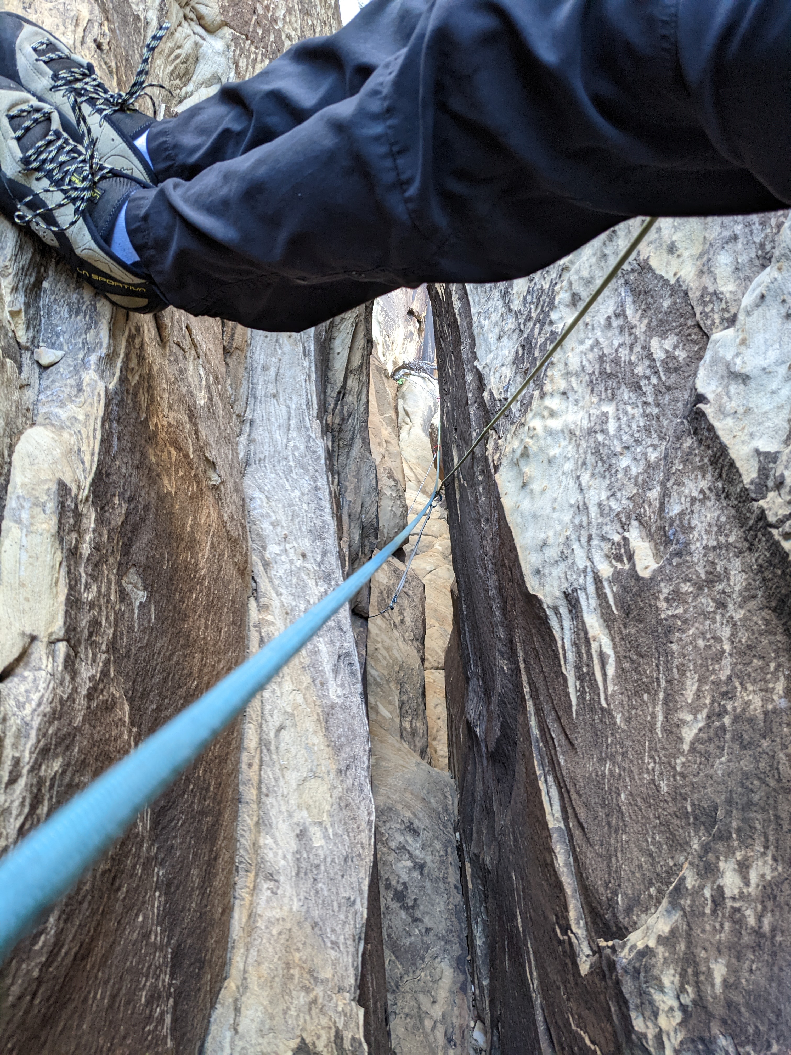 But, we were able to continue up to finish another pitch. And then we rappelled.