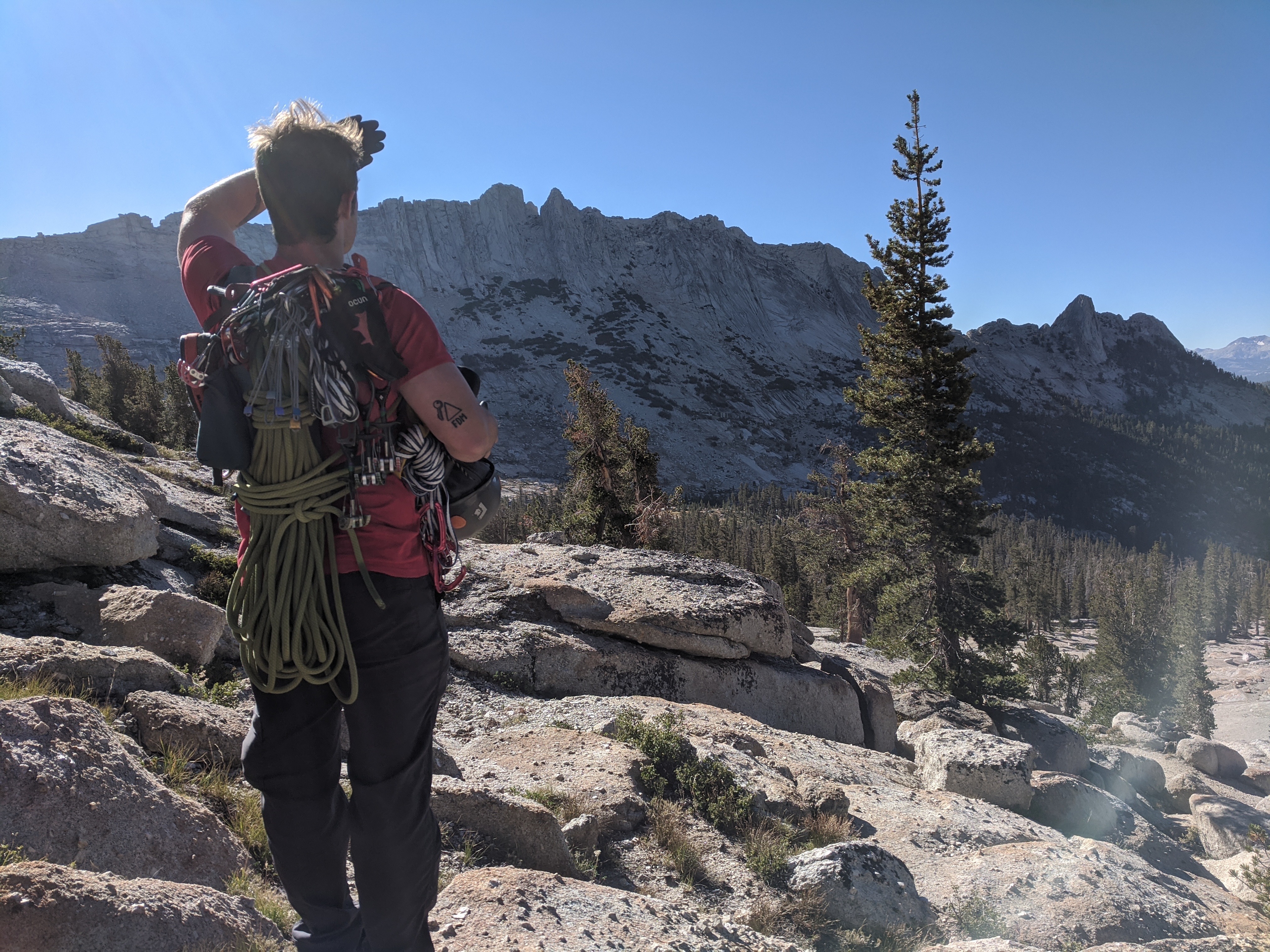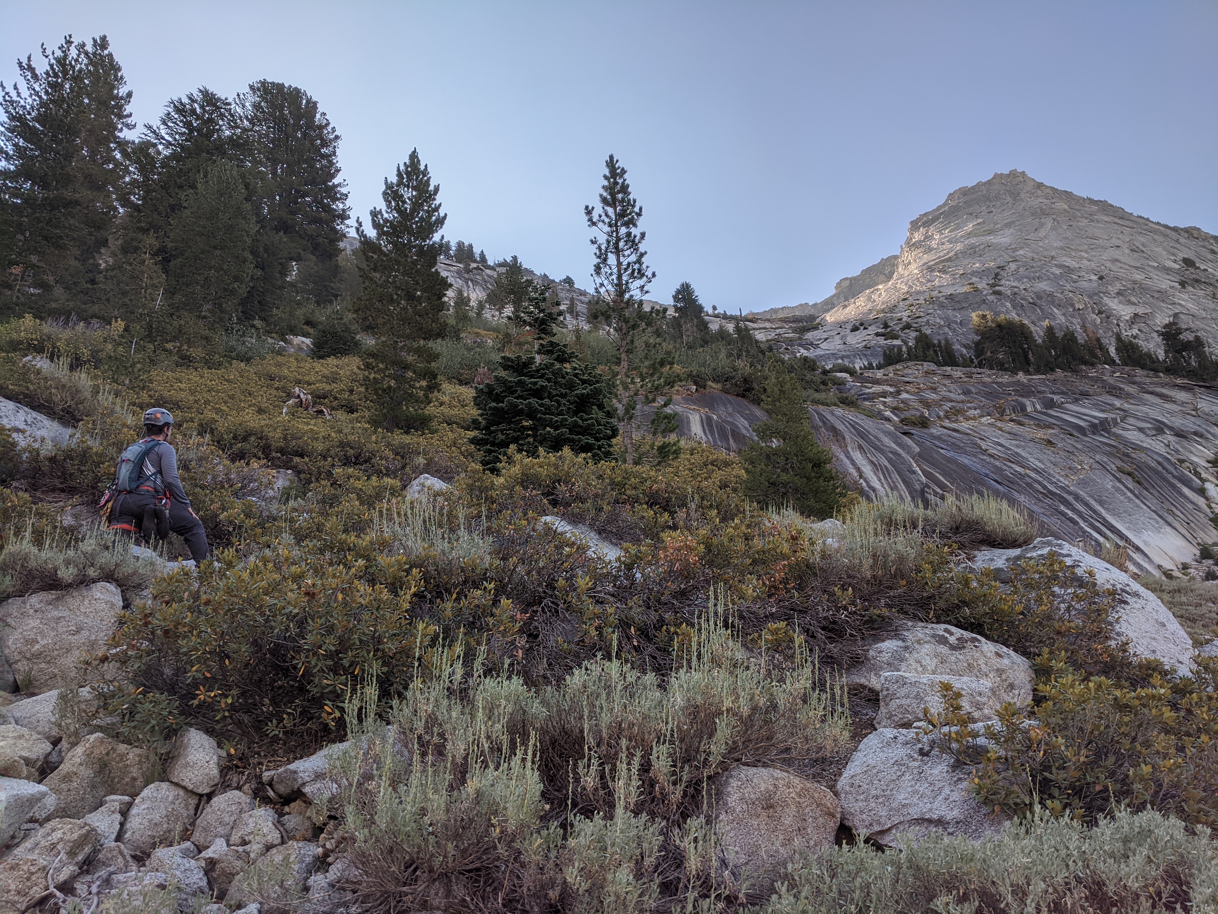 I’ve written about our Cathedral Peak climbing in a few other posts, notably Novelty, Anxiety and Growth where I describe getting off route and how important developing a sense of route finding is in trad climbing. Routefinding comes with experience, many pitches, of course. As you experience getting off route on a popular route, you note clues - such as more rock or lichen.