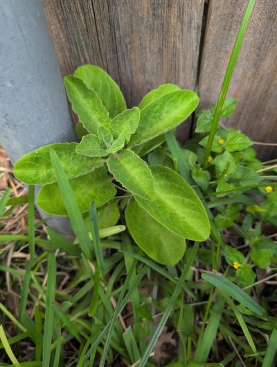 Asclepias oenotheroides, Zizotes Milkweed, emerging from our fenceline